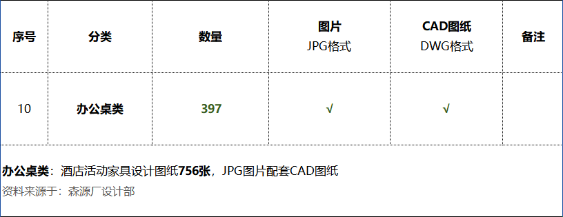 《办公桌类:酒店活动家具设计图纸397张》数量统计