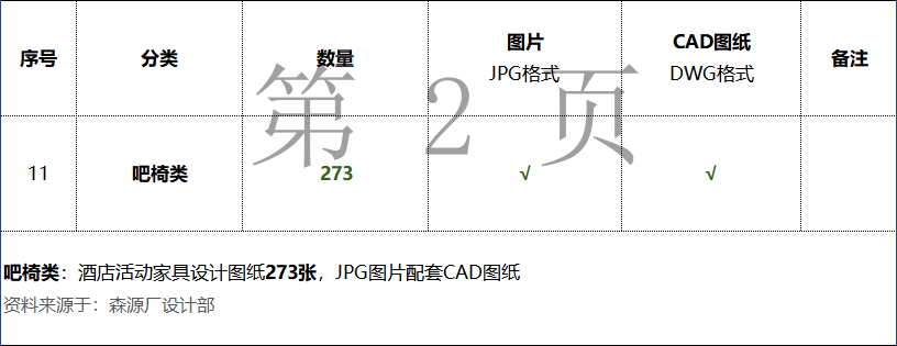 《吧椅类:酒店活动家具设计图纸273张》数量统计