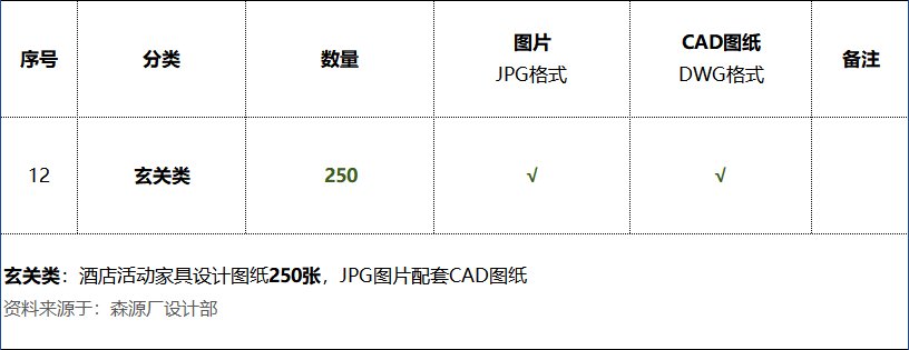 《玄关类:酒店活动家具设计图纸250张》部分资料