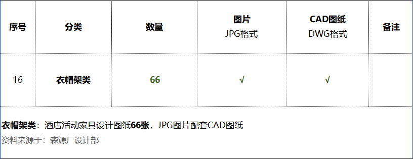 《衣帽架类:酒店活动家具设计图纸66张》,图片配套CAD图纸