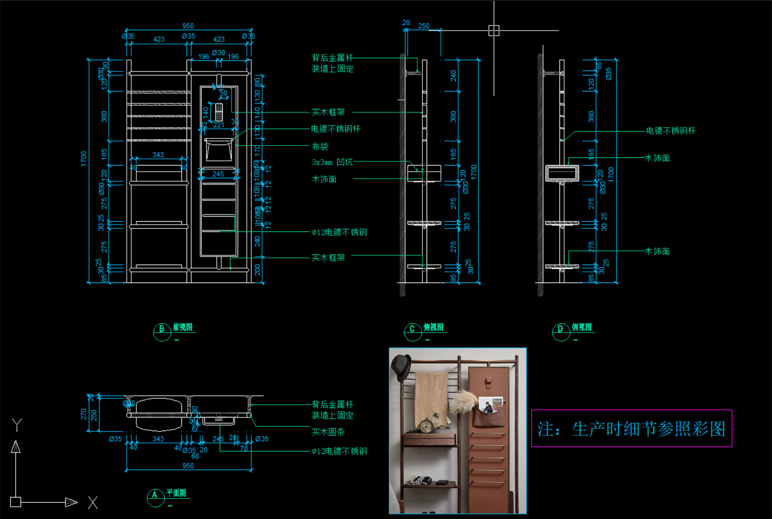 版面有限,只展示前面一小部分衣帽架类的CAD图纸+配套图片文件资料!