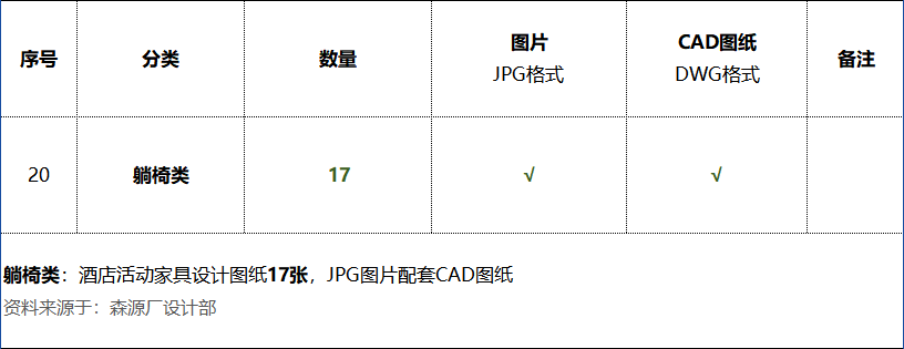 《躺椅类:酒店活动家具设计图纸17张》数量统计