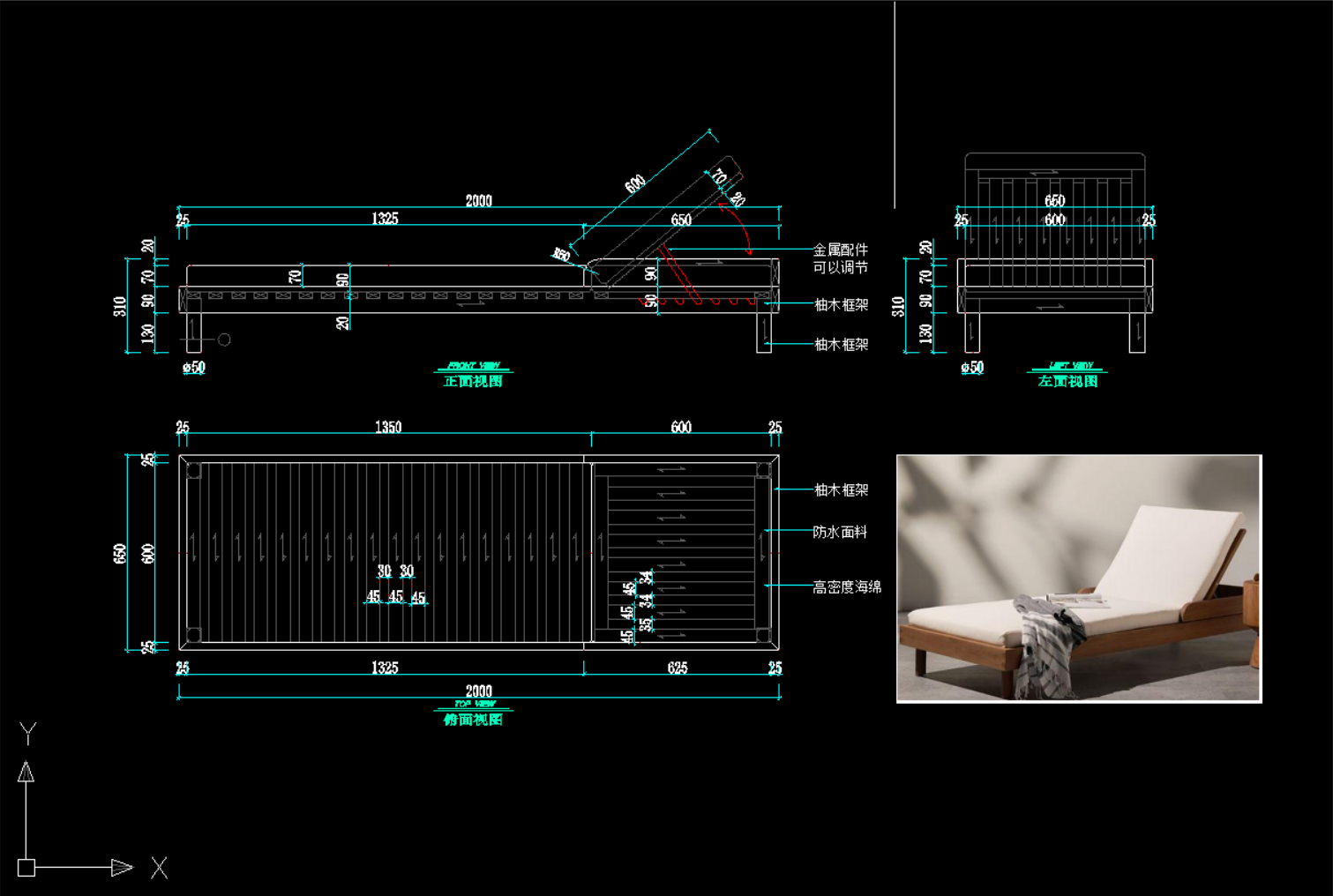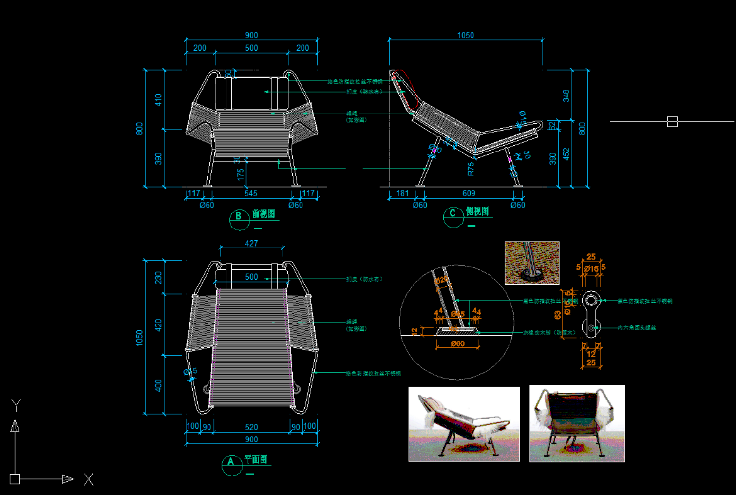 版面有限,只展示前面一小部分躺椅类的CAD图纸+配套图片文件资料!