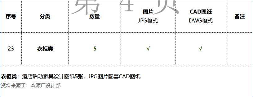 《衣柜类:酒店活动家具设计图纸5张》数量统计