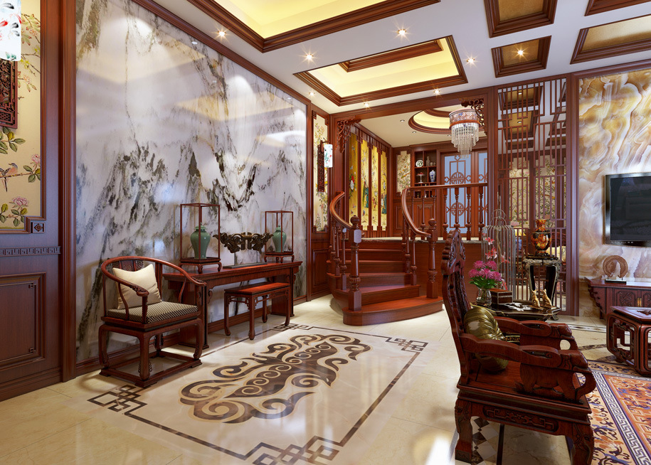 高清效果图+CAD整套003(中式),容量:47 MB,格式:JPG效果图+CAD图纸