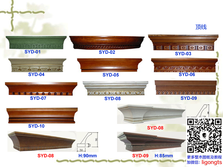 (橱柜门型 衣柜门型 罗马柱 根雕 顶线脚线 装饰板线 雕花 工艺架酒架 门 墙板、壁炉&吊顶 窗 楼梯等)