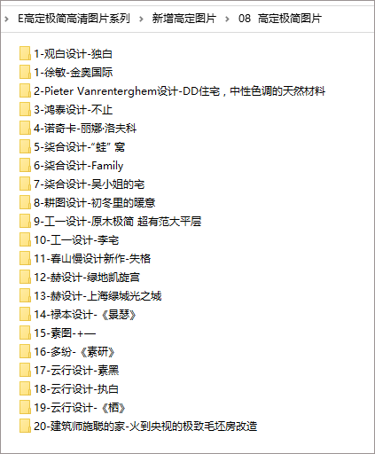 超大高定极简高清图片3000余张,细节图+场景图应有尽有。九大分类